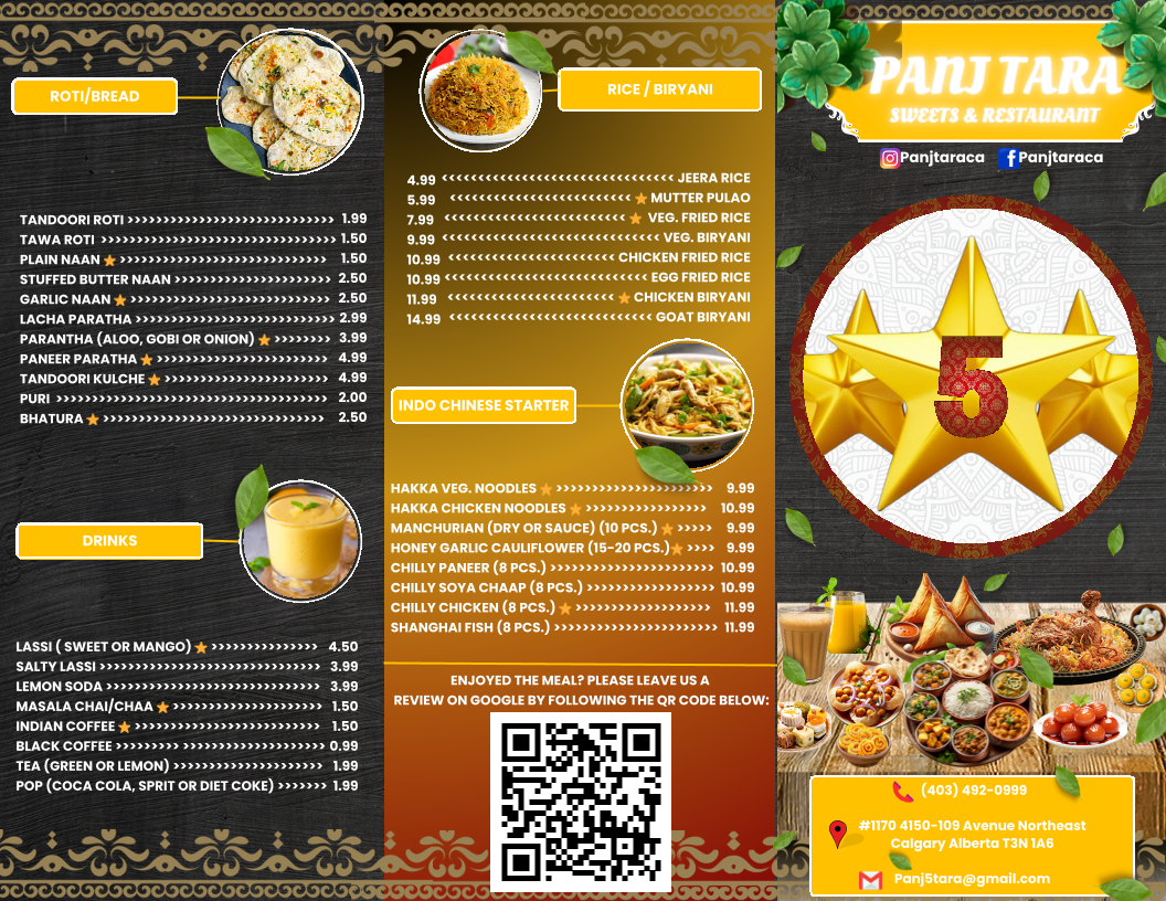 Whether you’re stopping in for a quick snack or planning a lavish dinner with friends and family, Panj Tara - Sweets & Restaurant promises to deliver on flavor, quality, and a memorable dining experience. With unbeatable prices and generous portions, this restaurant is a great value that shouldn’t be missed. Visit today and let the vibrant colors and aromatic spices of Indian cuisine ignite your taste buds!